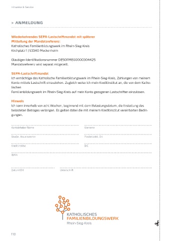 Familienbildungswerk im Rhein-Sieg-Kreis auf mein Konto gezogenen Lastschriften einzulösen. Name Vorname