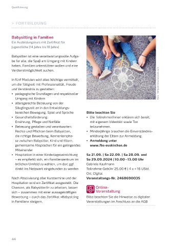 Bewerbung – durch das Zertifikat »Babysitting Bitte beachten Sie die Hinweise zu digitalen
