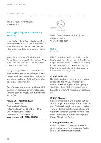 17.30 – 19.00 Uhr zu Erziehungs-, Entwicklungs- und Familienfra- Angebote des Kath. Familienzentrums Orbachstr. 19 a | 53913 Odendorf