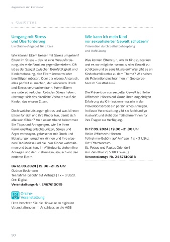 Eltern im Stress – das ist eine Herausforde- Was können Eltern tun, um ihr Kind zu stärken Erste Hilfe bei Kindernotfällen Veranstaltungs-Nr. 2467660060